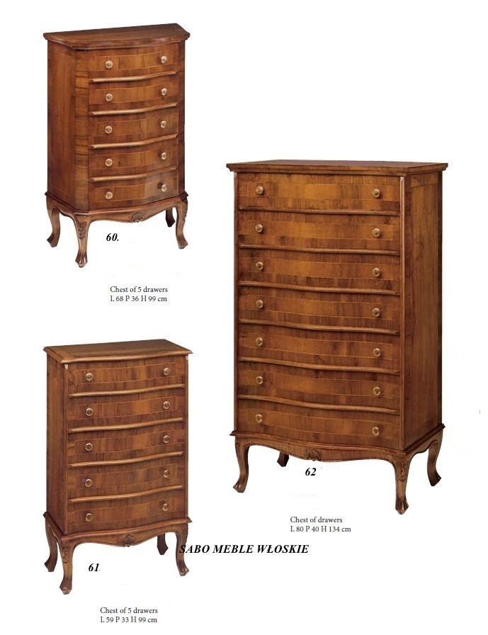 Komoda wysoka Linosa 62 , 7-szufladowa,wykonana z drewna orzechowego,intarsjowana