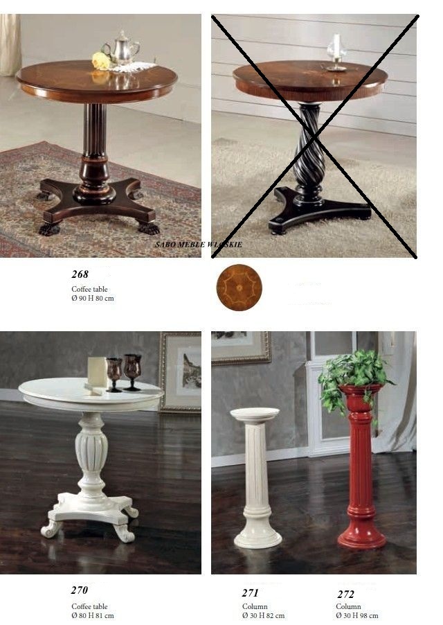 Stylowy stolik kawowy Linosa 270,wykonany z drewna orzechowego z blatem intarsjowanym