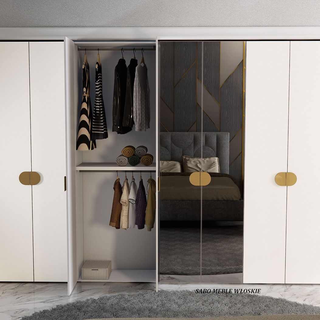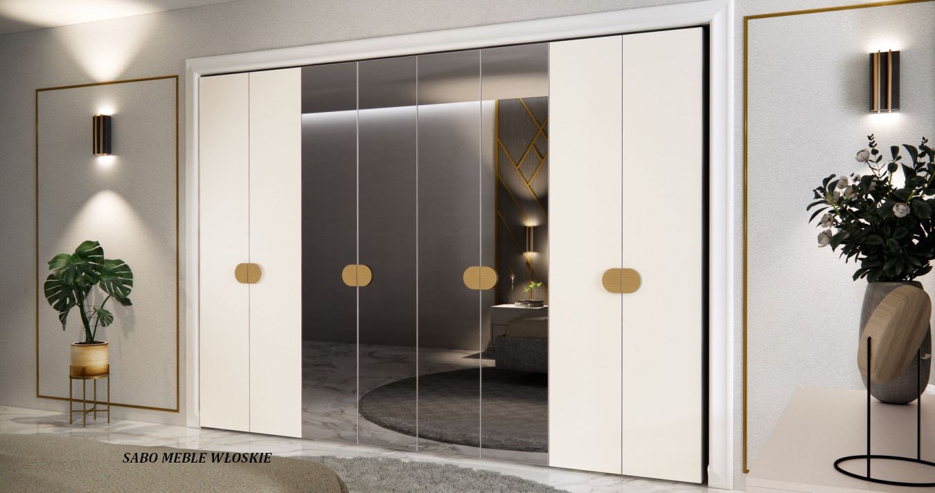 szafa 8-drzwiowa modułowa Gracja w kolorze białym moon,dodatki złote,