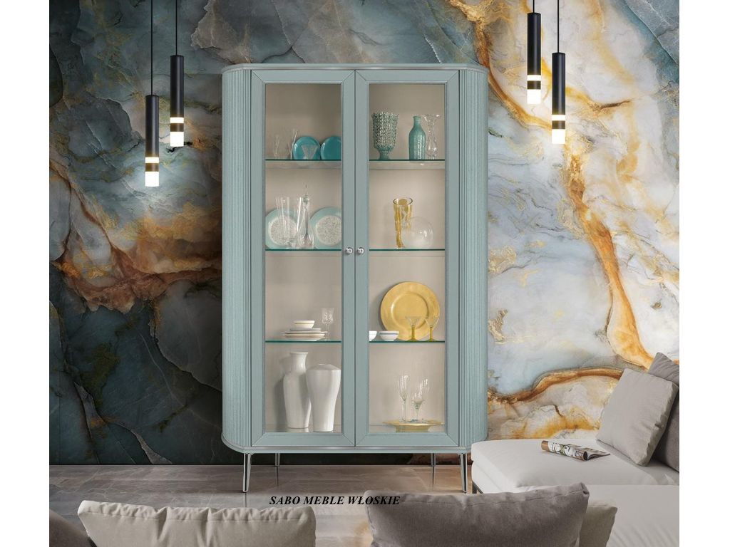 Witryna 2-drzwiowa Margaret na metalowych złotych nóżkach w kolorzeMEBLE SĄ ZAMAWIANE I PRZYWOŻONE TYLKO I WYŁĄCZNIE NA KONKRETNE ZAMÓWIENIE KLIENTA