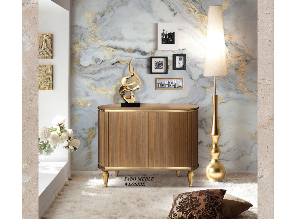 Nóżki metalowe w kolorze złotym lub chromu.Uchwyty złote lub srebrne z centralnym