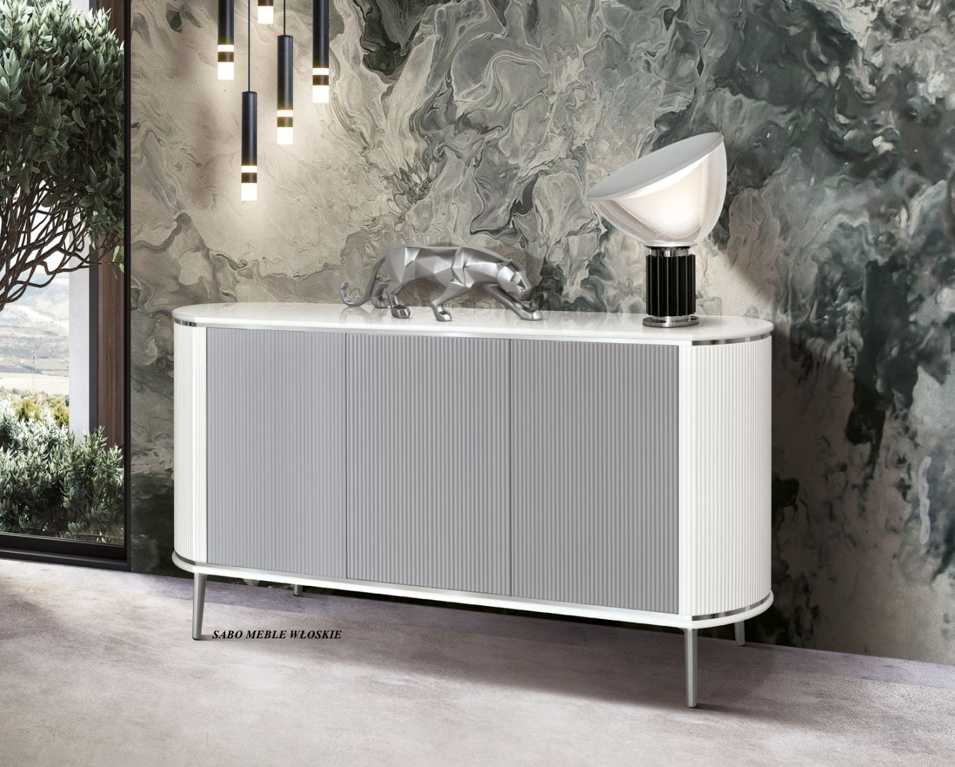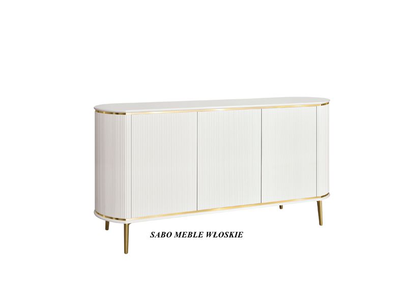 Komoda 3-drzwiowa Margaret na metalowych złotych nóżkach w kolorze białym,MEBLE SĄ ZAMAWIANE I PRZYWOŻONE TYLKO I WYŁĄCZNIE NA KONKRETNE ZAMÓWIENIE KLIENTA