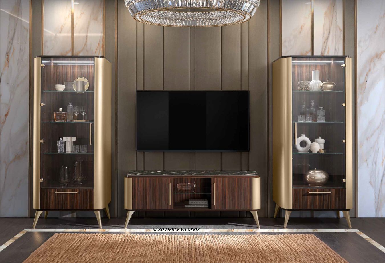 Zestaw do salonu Hebe obejmuje witrynę 1d z oświetleniem LED lewą i prawą,stolik rtv