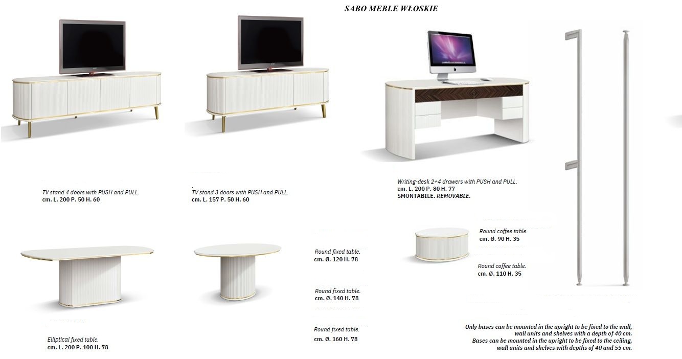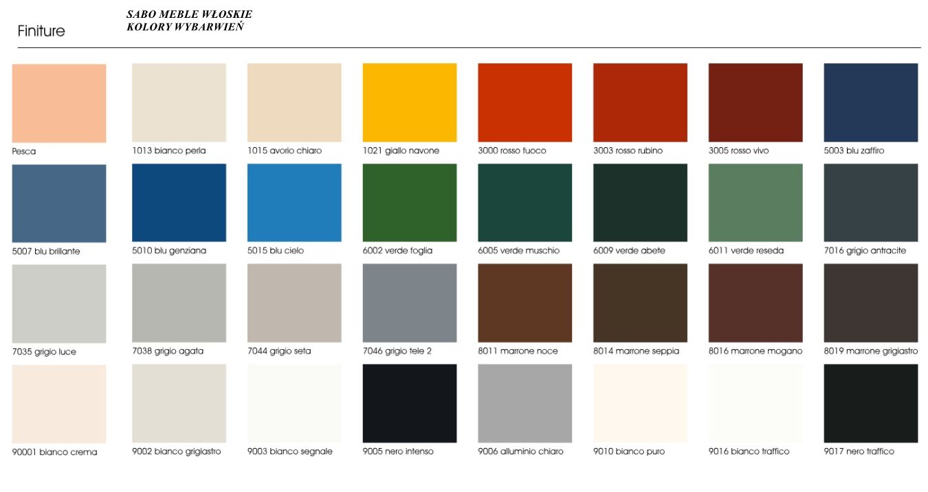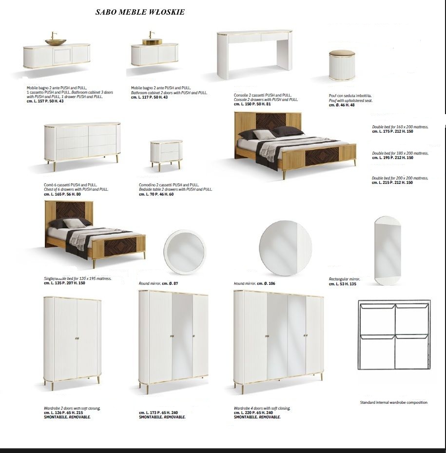 Nóżki metalowe w kolorze złotym lub chromu.Uchwyty złote lub srebrne z centralnym