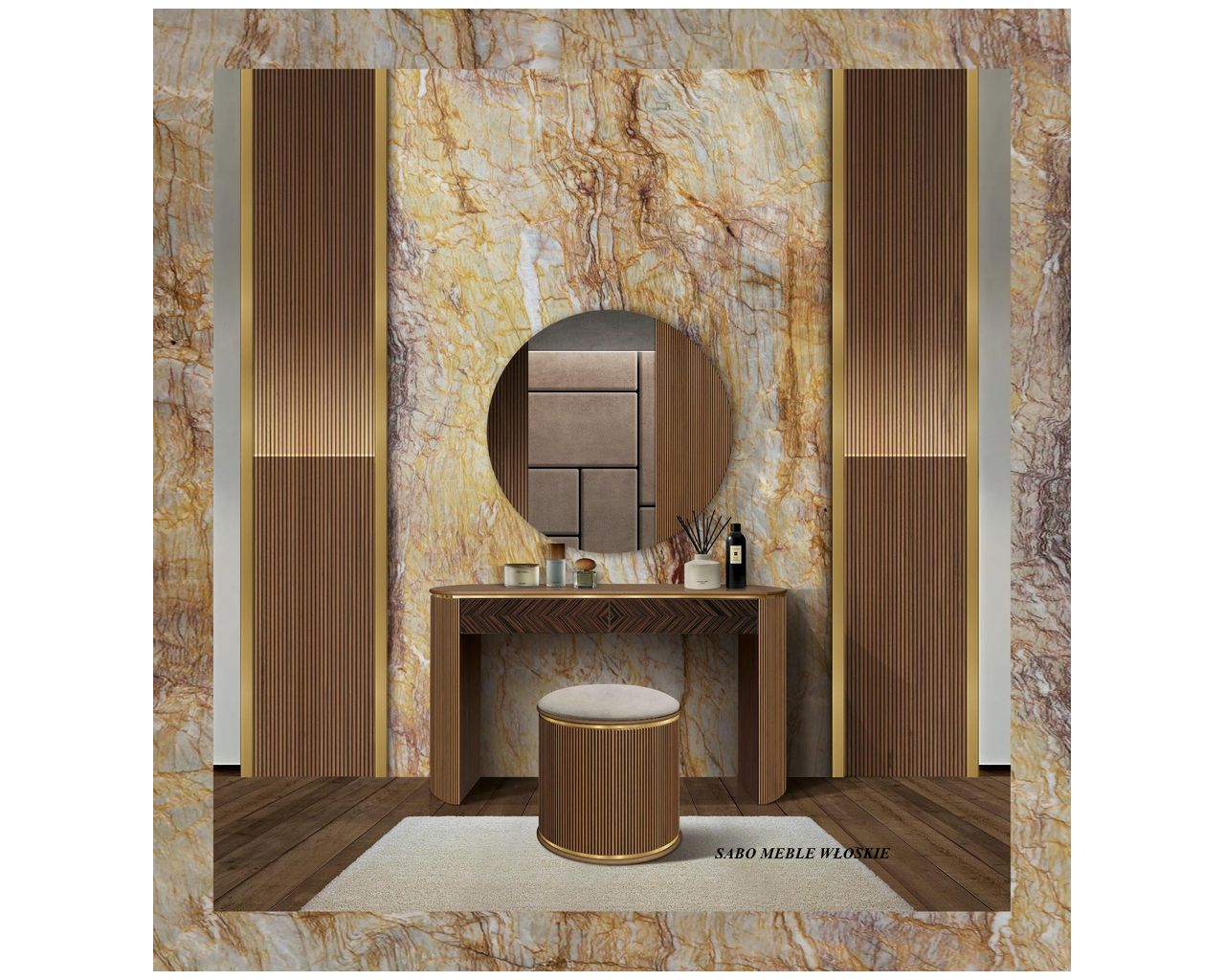 11218 Nowoczesna toaletka Margaret orzechowo-złota
