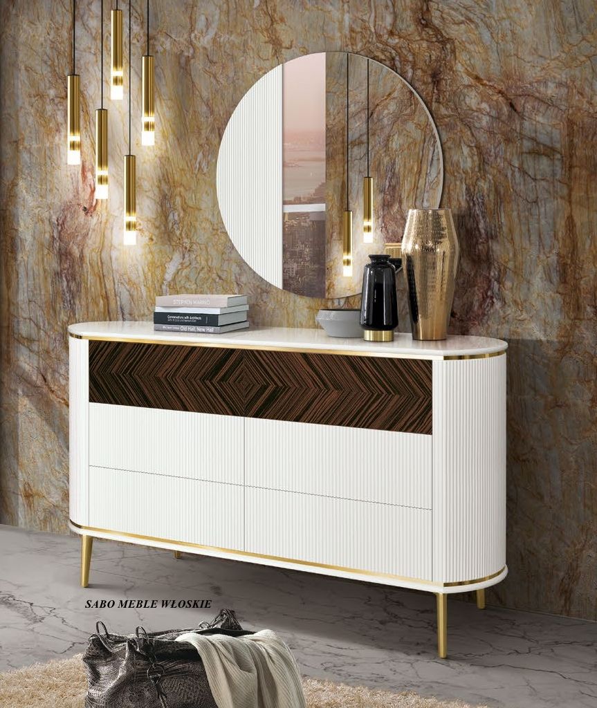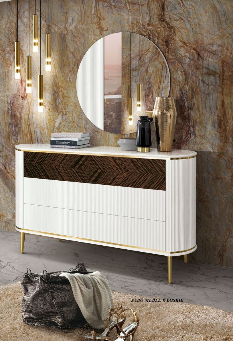Nóżki metalowe w kolorze złotym lub chromu.Uchwyty złote lub srebrne z centralnym