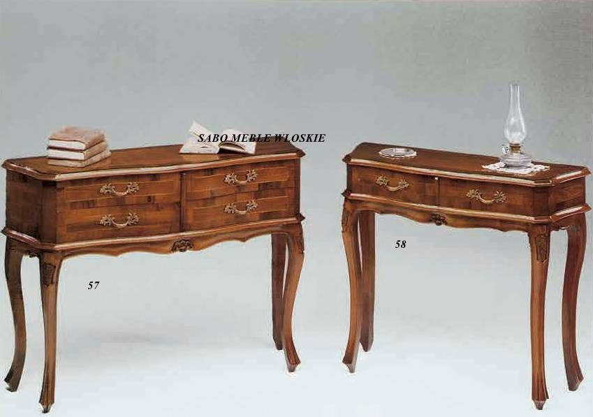 konsola Linosa 57 4-szufladowa,wykonana z drewna orzechowego,ozdobiona intarsją,