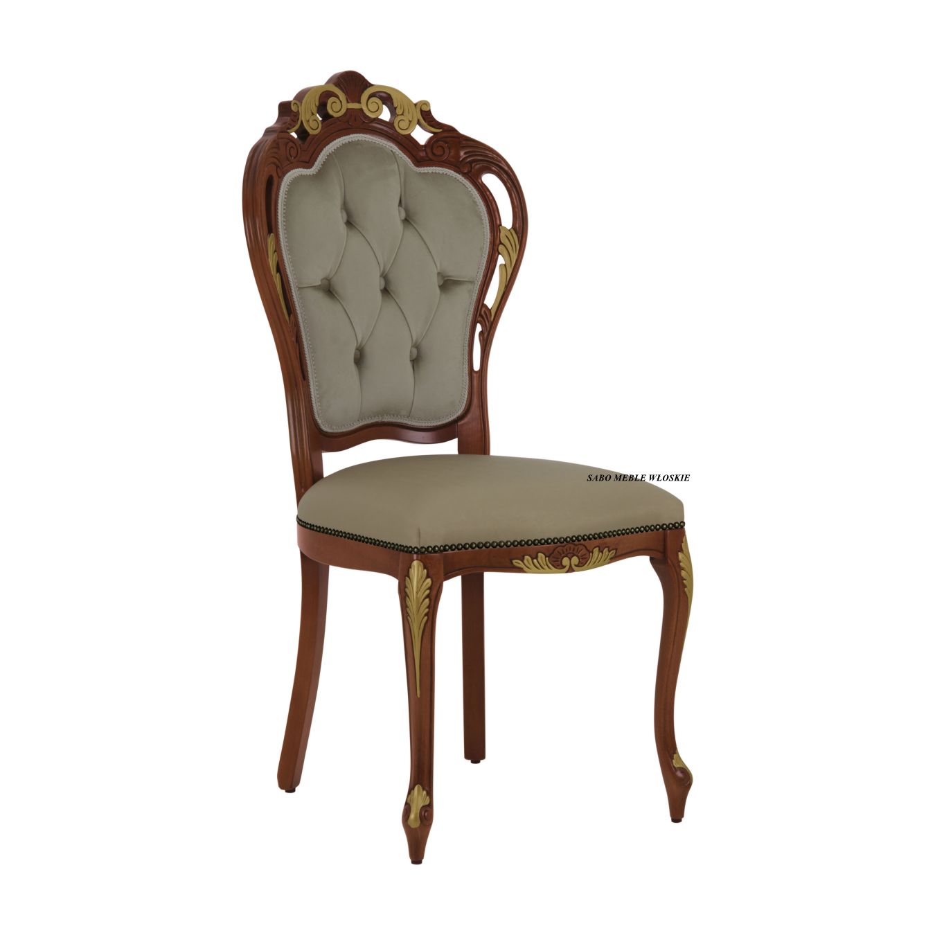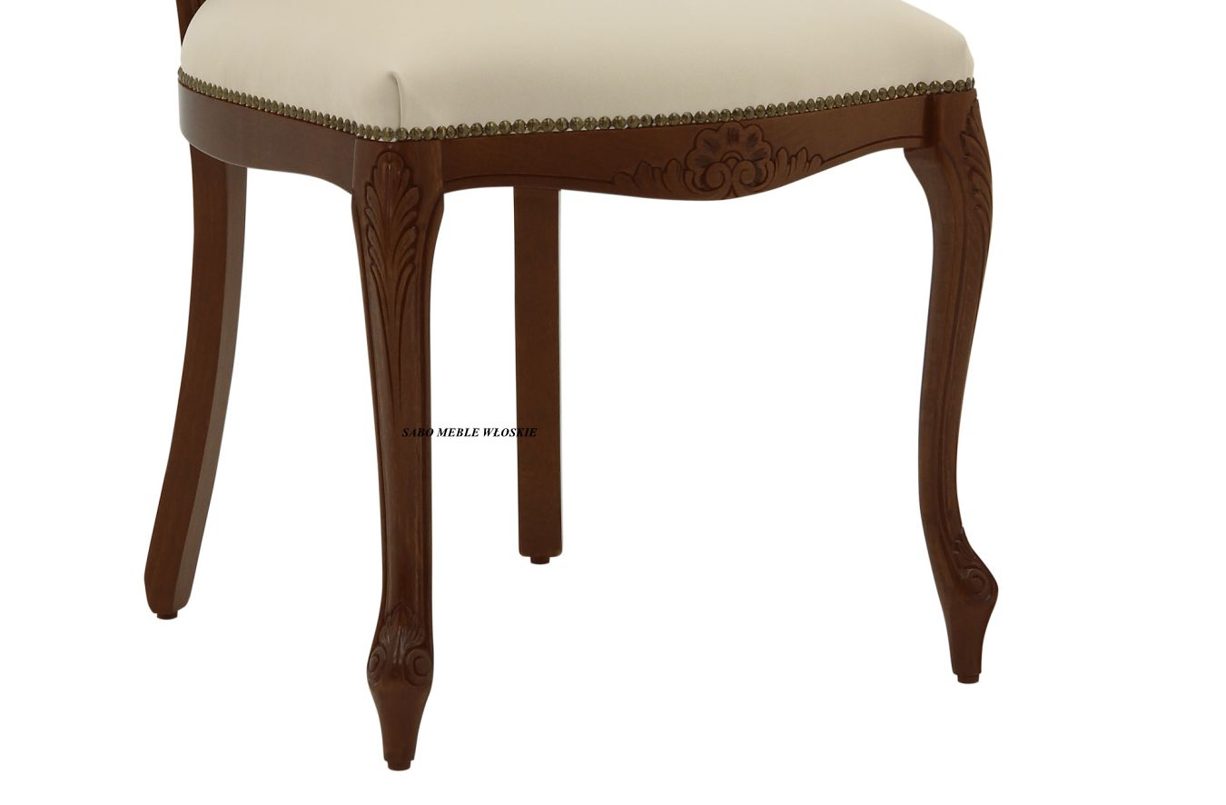 Krzesło"Barocco SV",lakierowane w kolorze orzechowym,tapicerowane w naturalnej