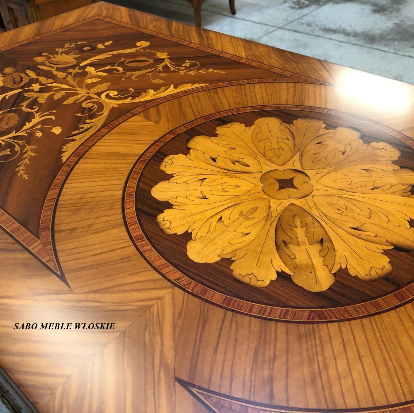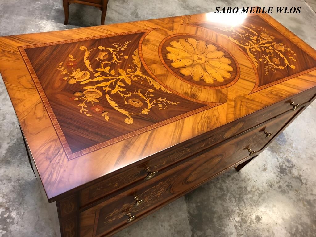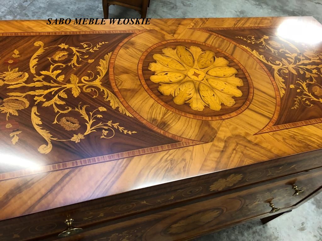 inkrustowana za pomocą kilku gatunków drewna w stylu antycznym z przebogatym