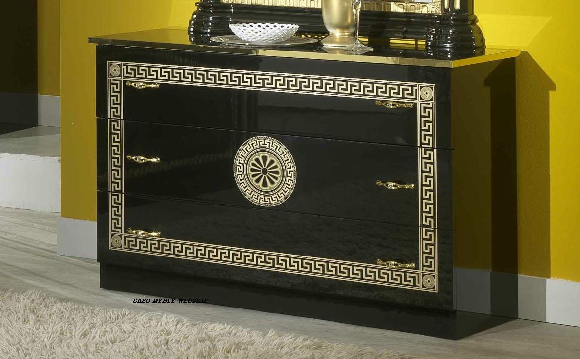 lakierowane na wysoki połysk,całość w kolorze czarnym ,wykończona serigrafią złotą,