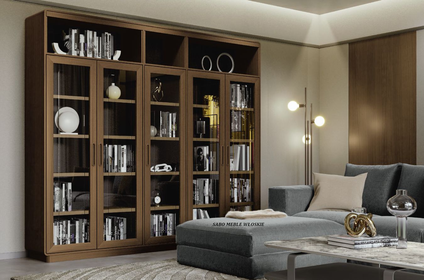 biblioteka regał Augurio,5-drzwiowa z nadstawką,szkło frontowe ozdobnie