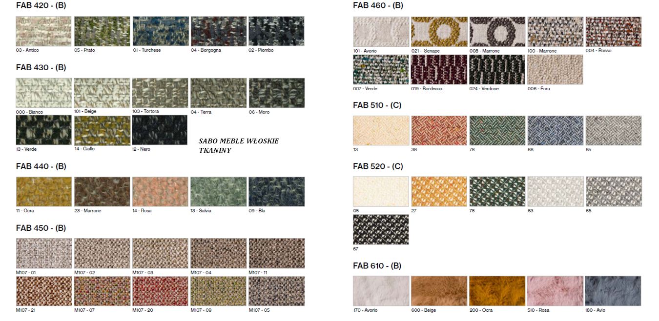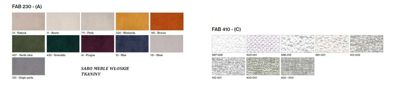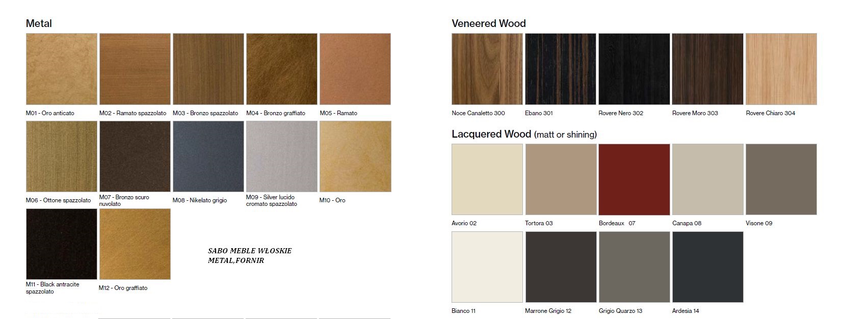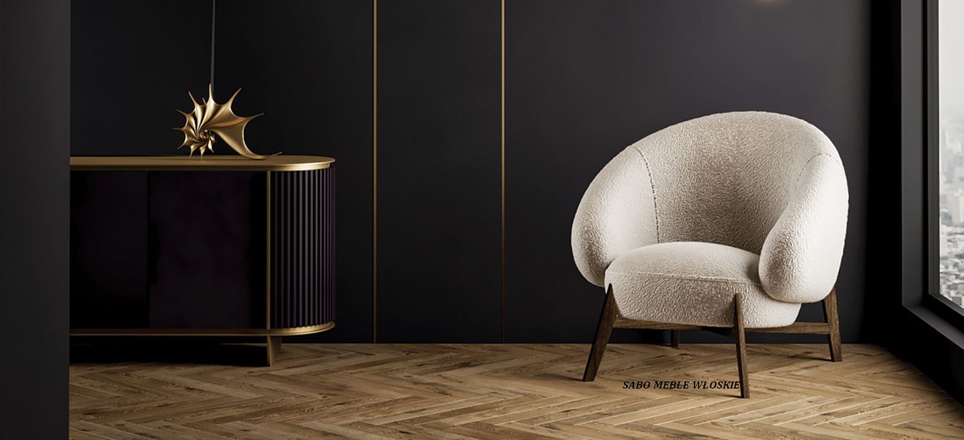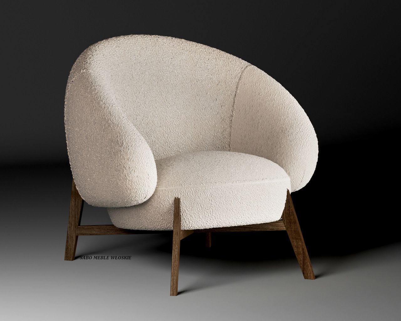 wykończone materiałem buclè w połączeniu z wysokiej jakości włoskim drewnem.
