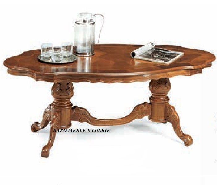 Stylowa ława duża Linosa 257,wykonana z drewna orzechowego z blatem intarsjowanym