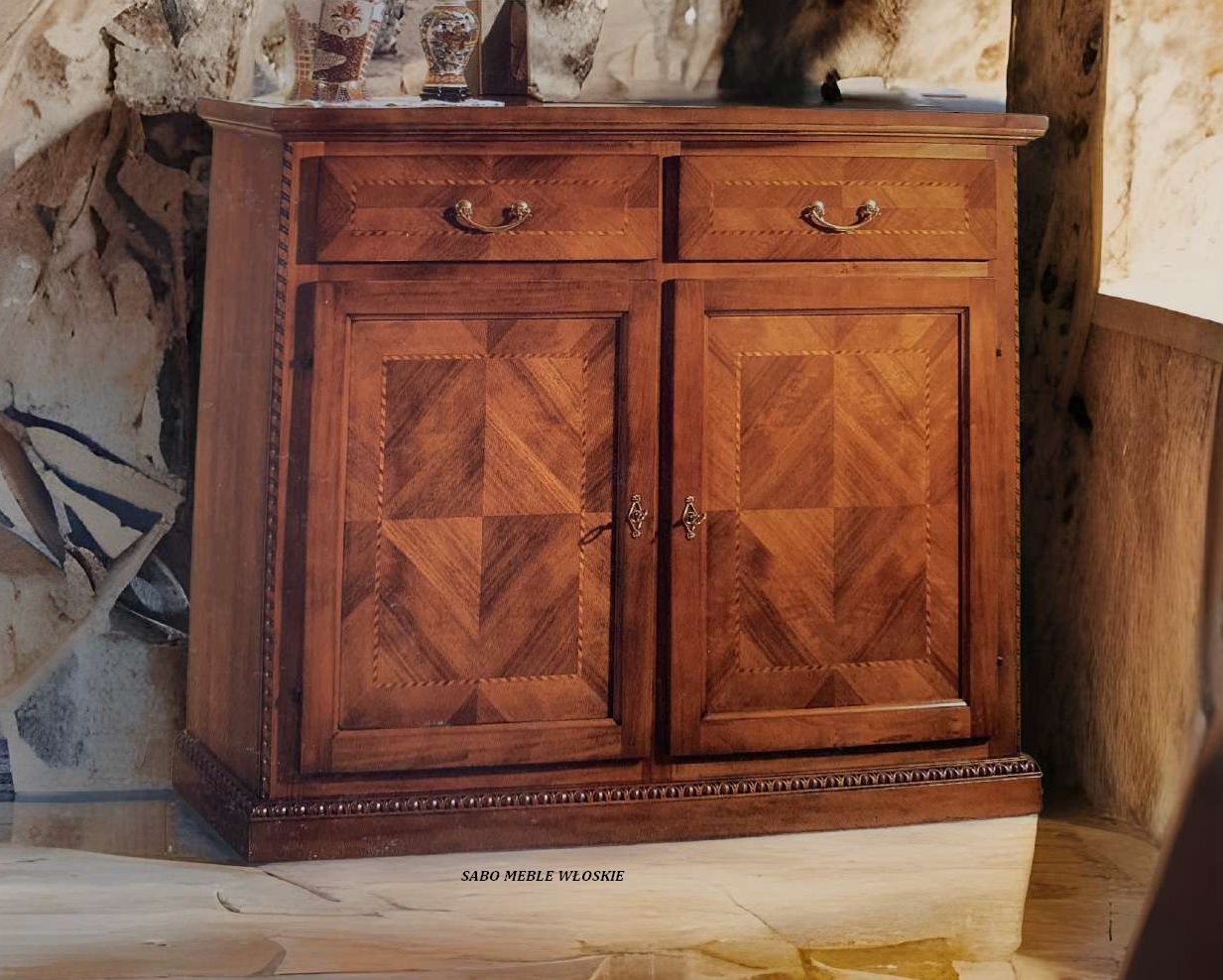 Stylowa komoda Linosa 377 ,2-drzwiowa i 2 szufladami z intarsją ,wykonana z drewna
