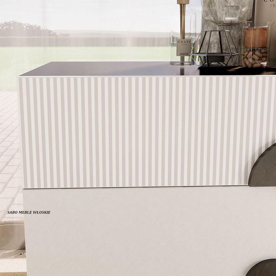 strukturze.Uchwyty i blaty lakierowane w połysku imitujące marmur.Fronty gładkie