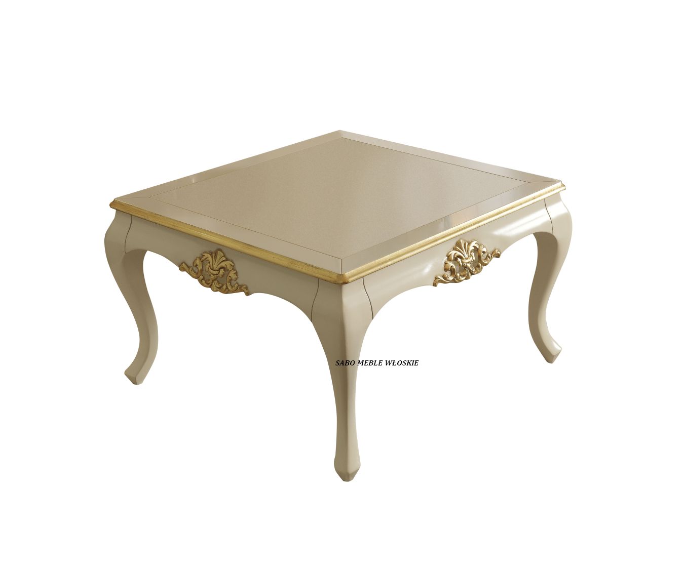 ława kwadratowa "C468Y"w kolorze pudrowym ze złotymi dodatkami,