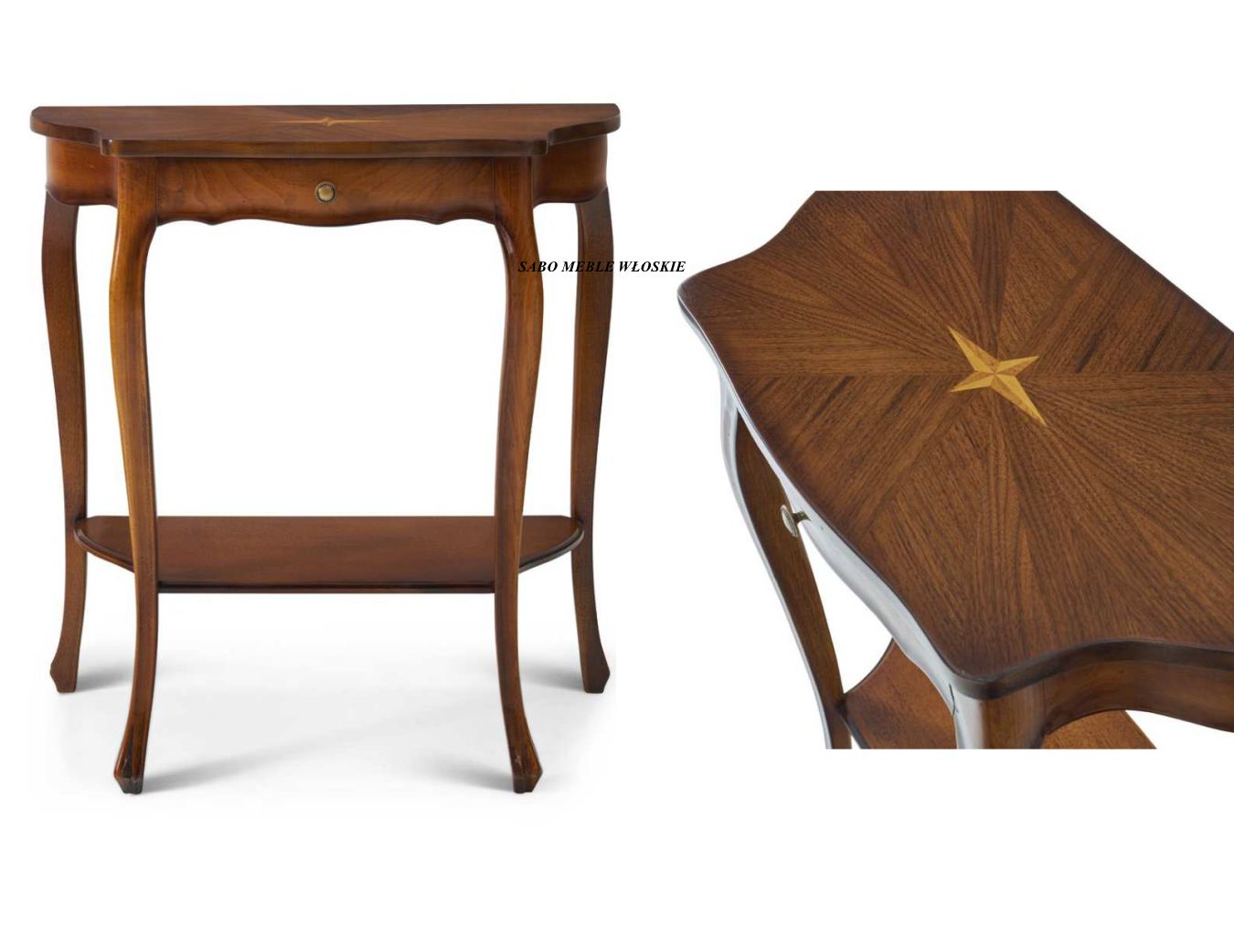 konsola Genewa 243 z jedną szufladą ,intarsjowana,wykonana z drewna orzechowego ,