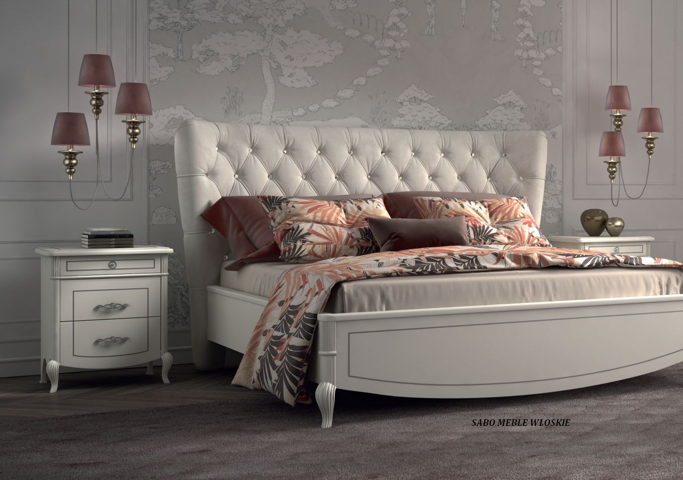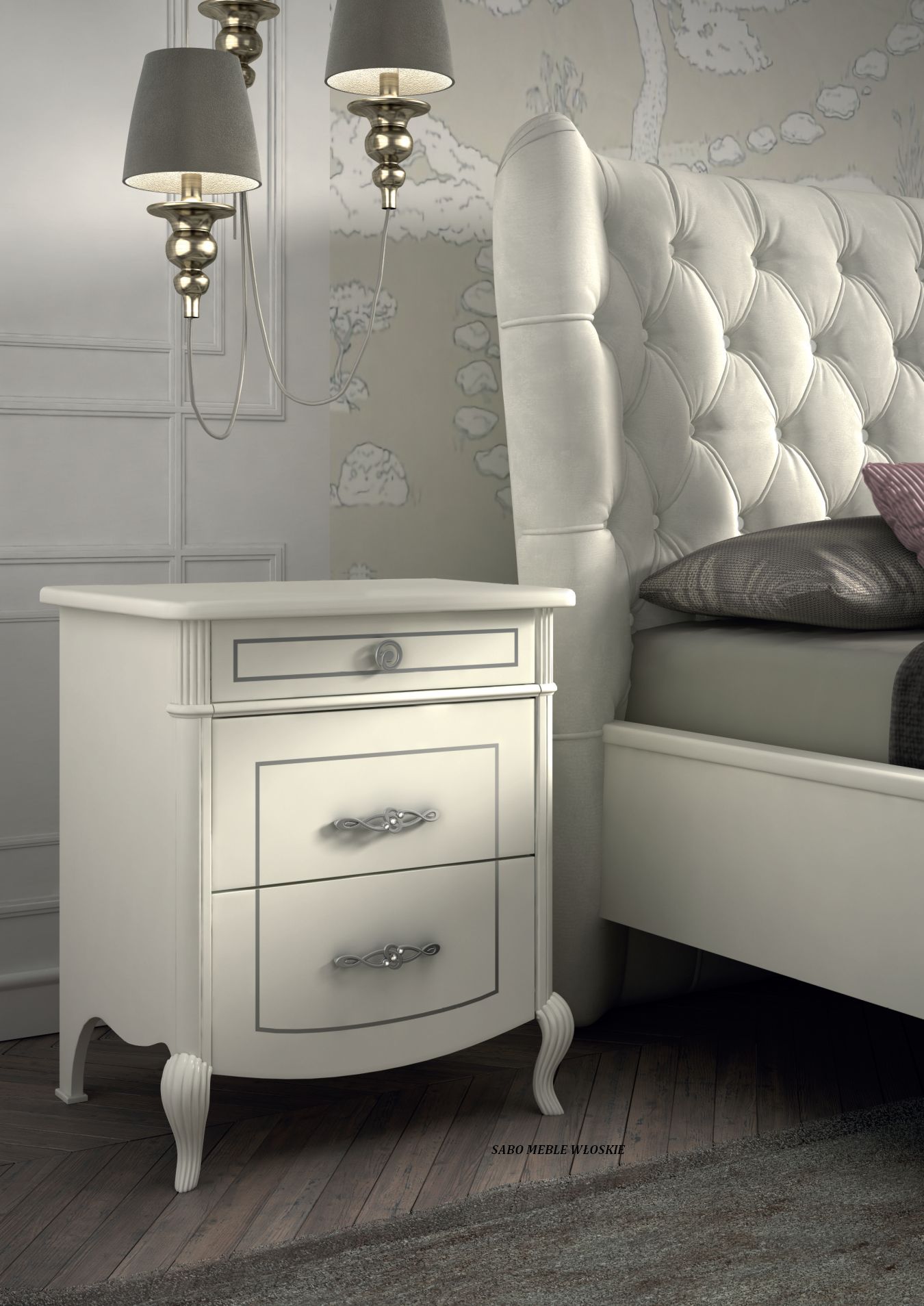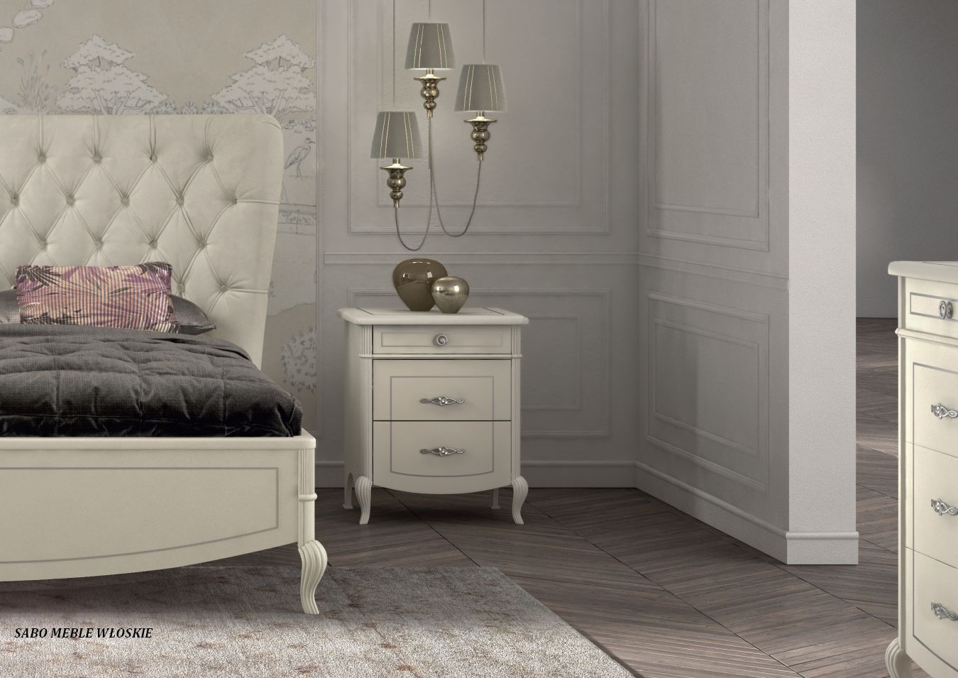 meble włoskie w stylu Glamour,elegancki, klasyczny design w kolorze złamanej bieli,