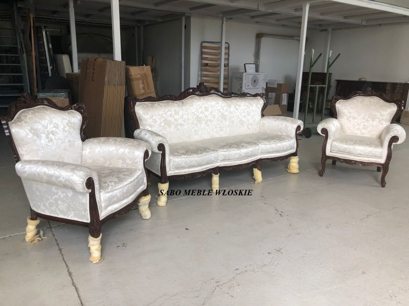 cena dotyczy zestawu kanapy 3-osobowej i dwóch foteli,tapicerowanego w białej kwiecistej