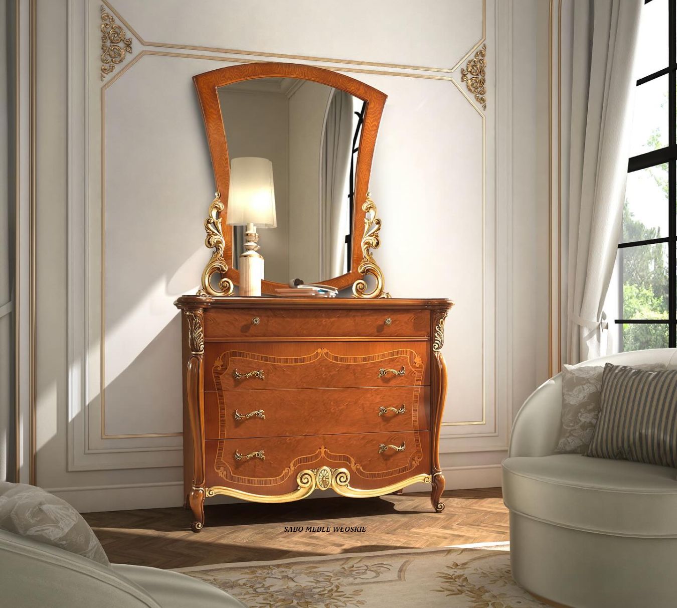 Meble włoskie w stylu Glamour,elegancki, klasyczny design ze złotym wystrojem ,