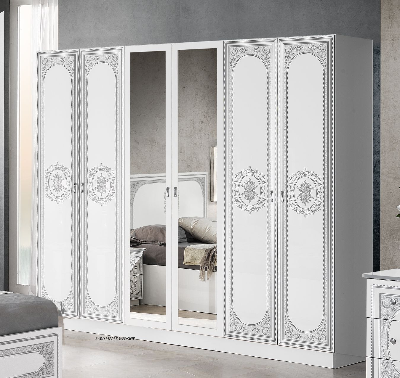 cena kompletu Palmira obejmuje szafę 6-drzwiową ,łóżko L160 bez stelaża ,