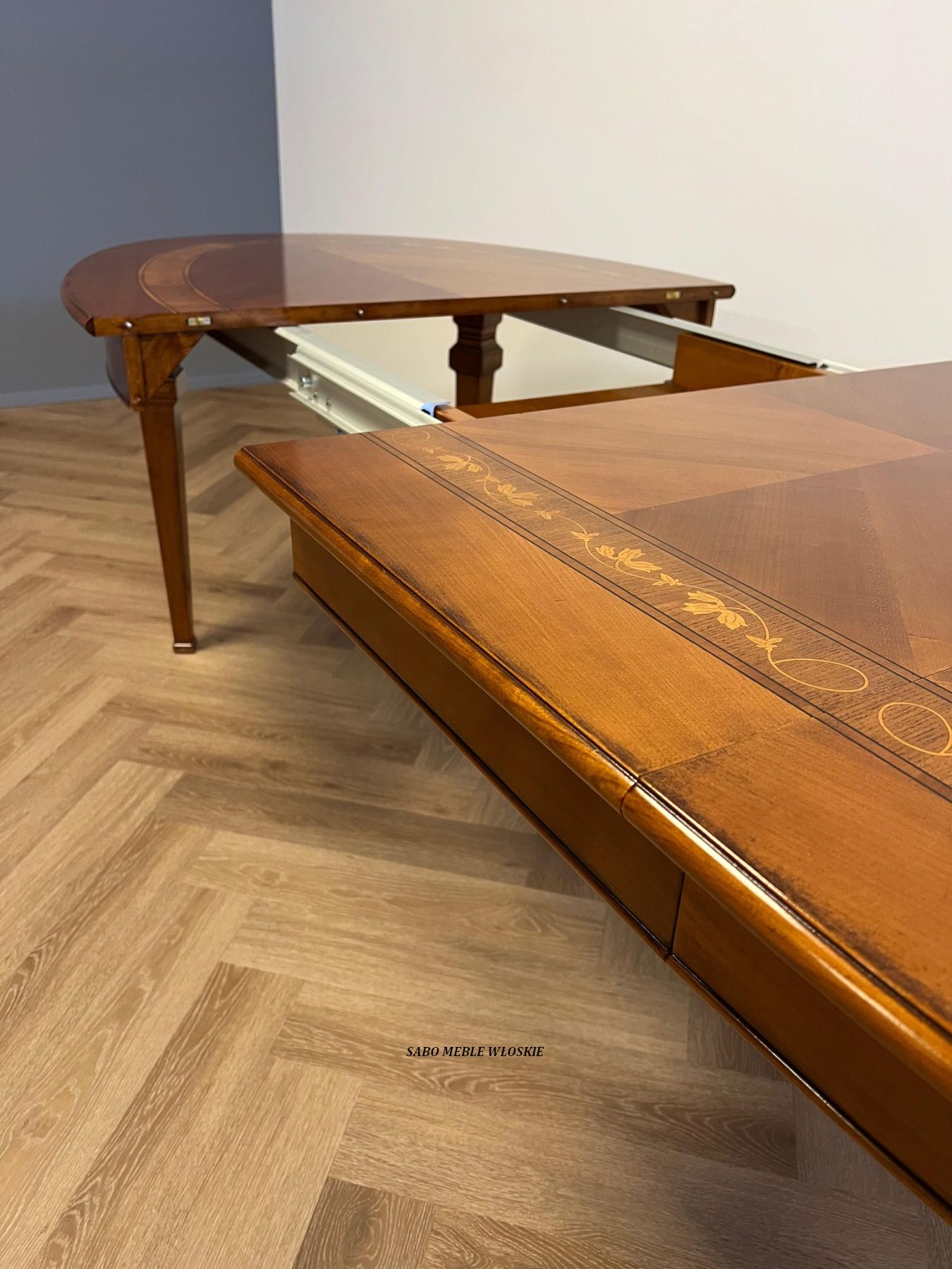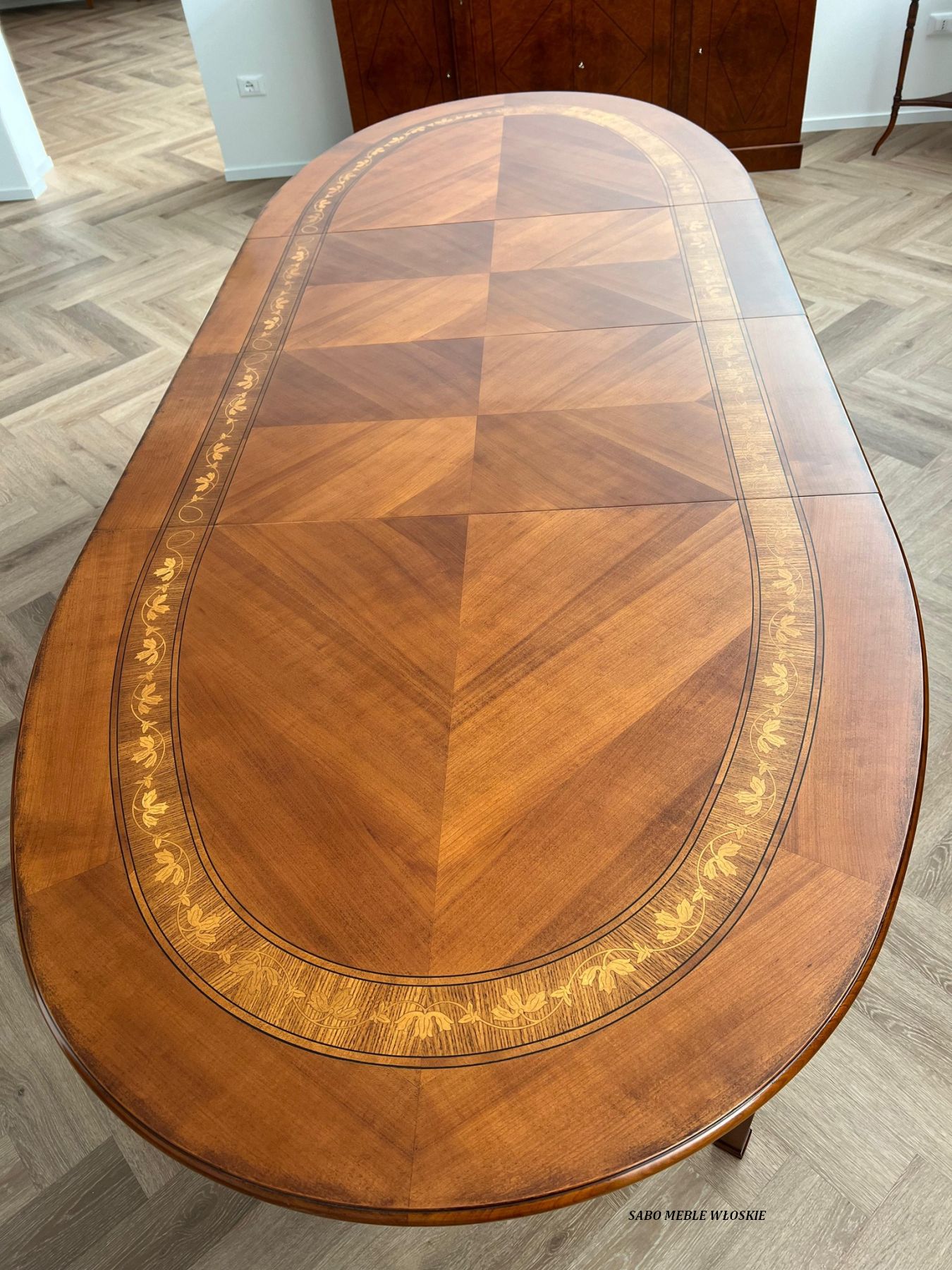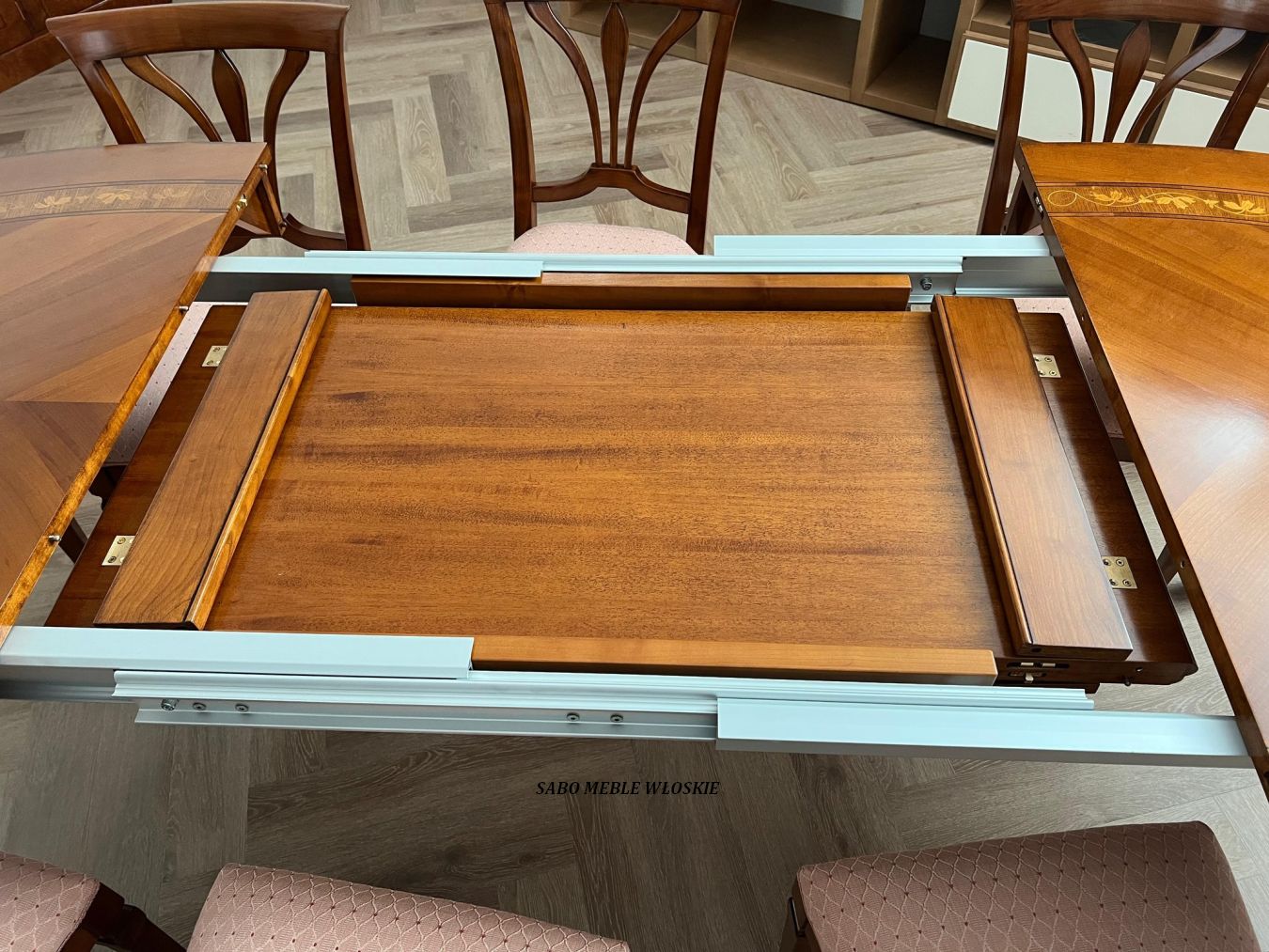 stół rozkładany owalny z dwoma wkładami z intarsją,które można wyjąć