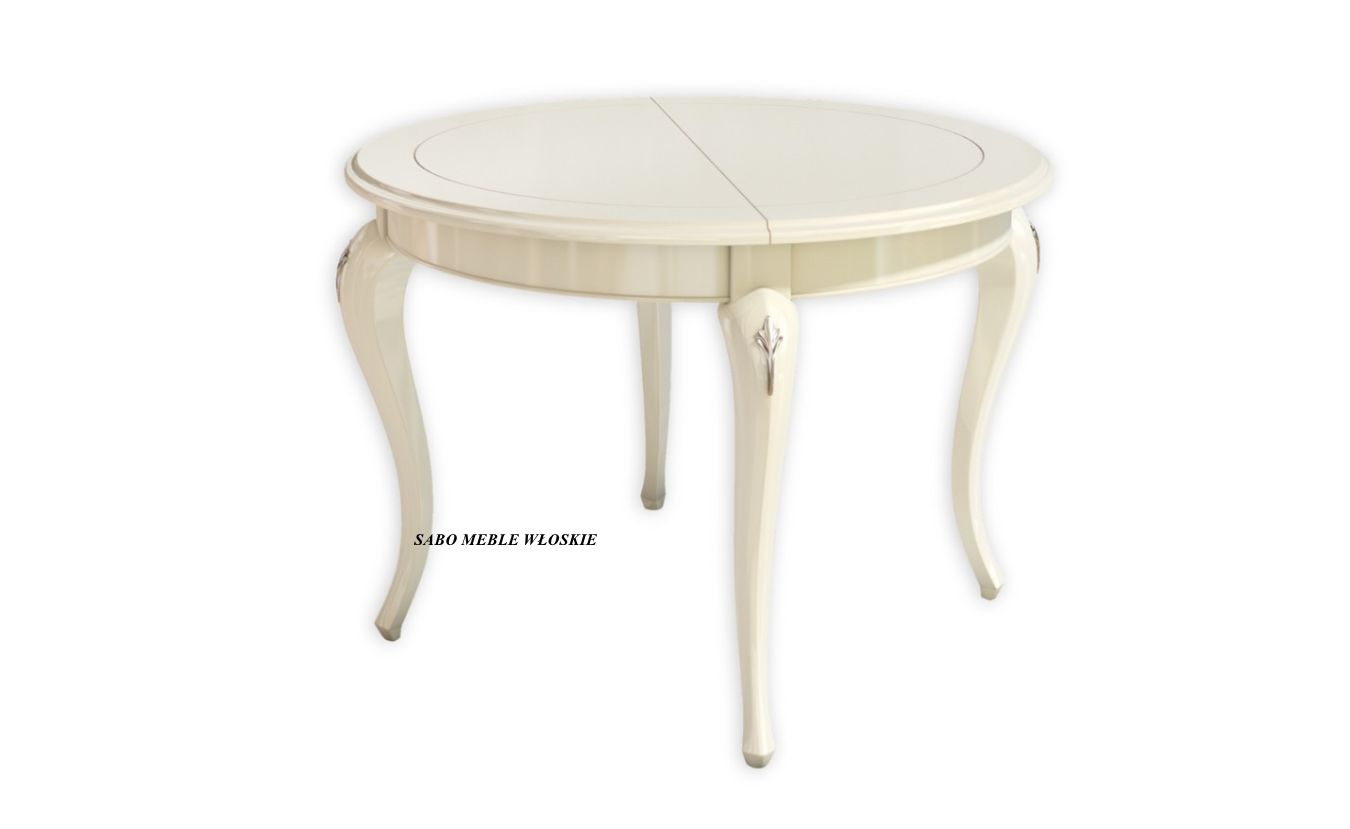 rozkładany stół okrągły Wenecja"BP54/150"w kolorze białym patynowanym ze srebrnymi