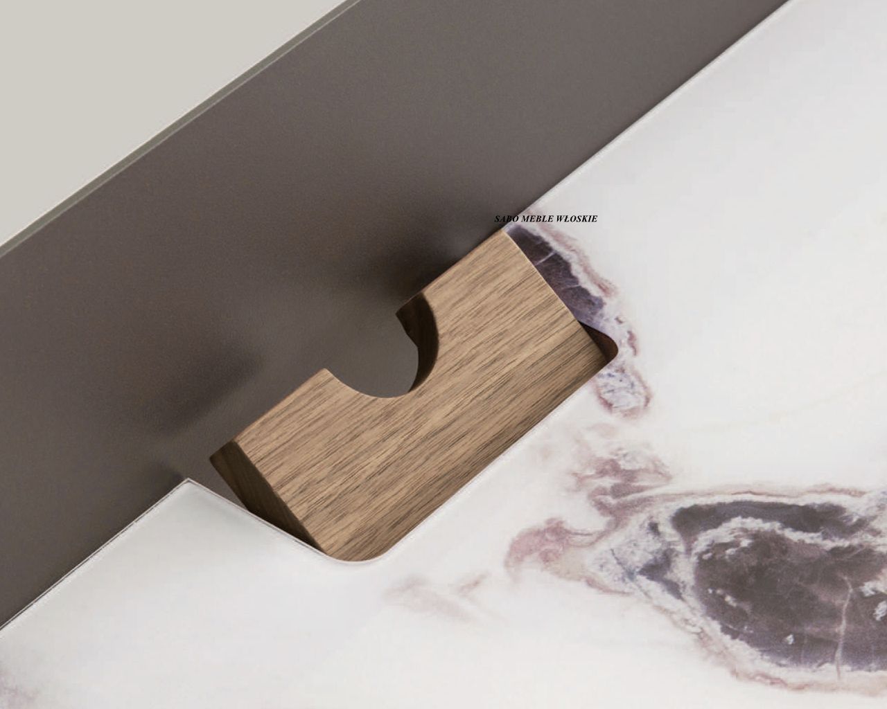 otaczającą z tyłu szklany blat z nadrukiem z doskonałym efektem marmuru.