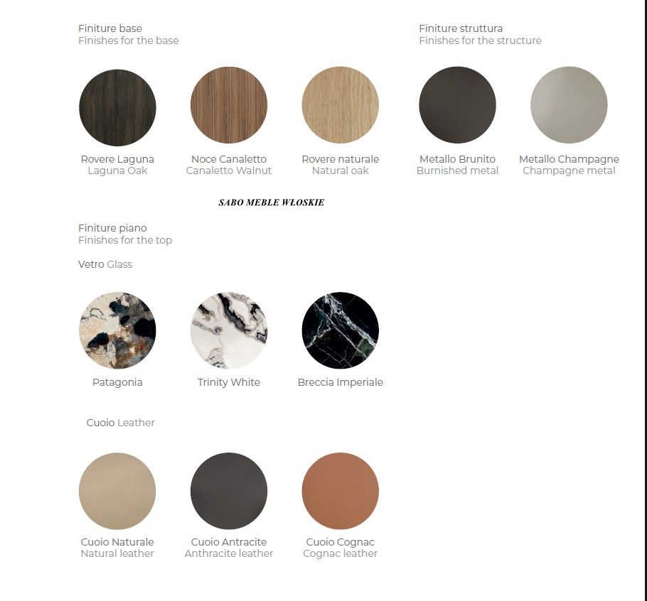 Ten wyrafinowany projekt łączy płynne linie z cennymi wykończeniami. Nogi wykończone
