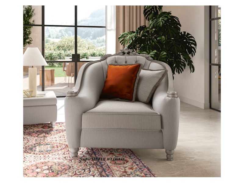 (grupa cenowa"B"),nóżki i korona oparcia drewniane lakierowane w kolorze srebrnym,