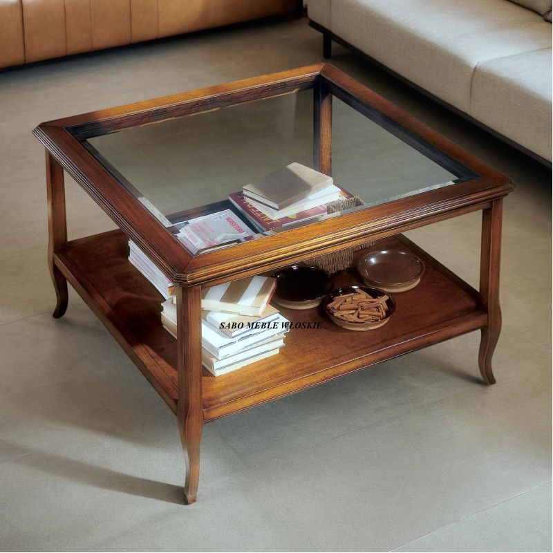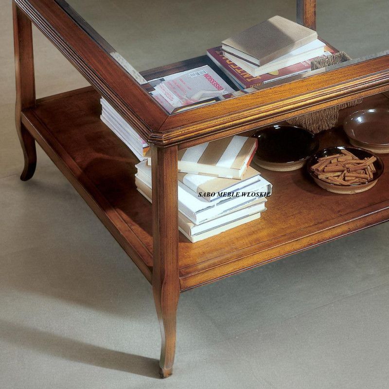 Stolik kwadratowy"29-57"w stylu prowansalskim w kolorze wiśniowym ze szklanym