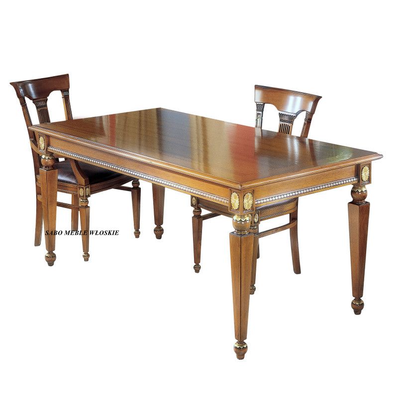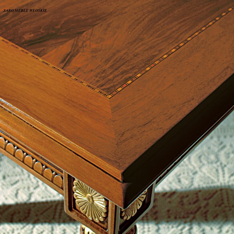 lakierowany w kolorze orzecha classic,ozdobiony elementami pokrytymi zlotą folią