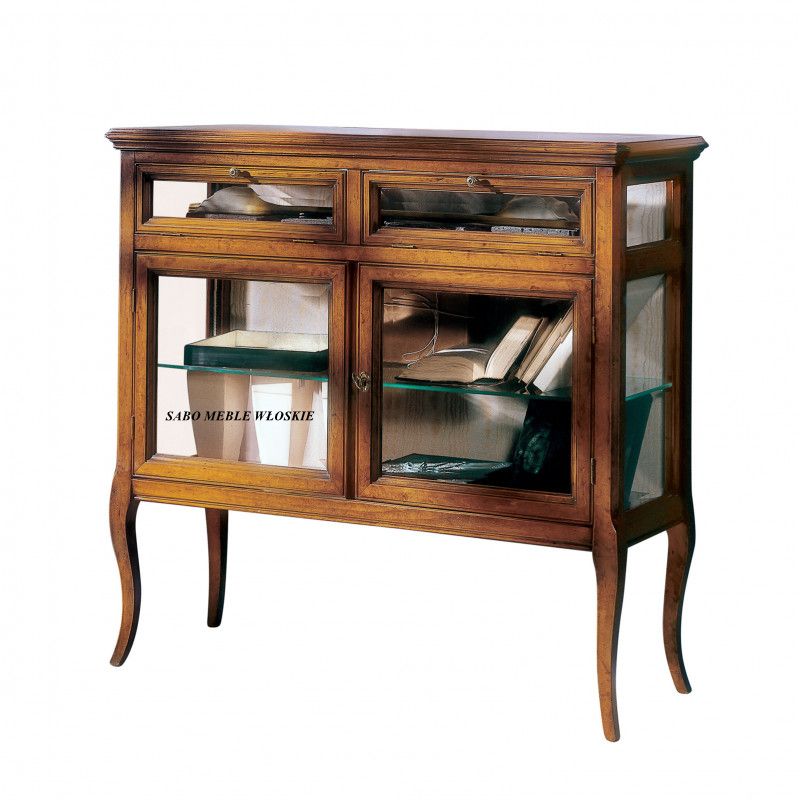 Witryna 2-drzwiowa"06-47"w stylu prowansalskim ,boki przeszklone,plecy obite tkaniną