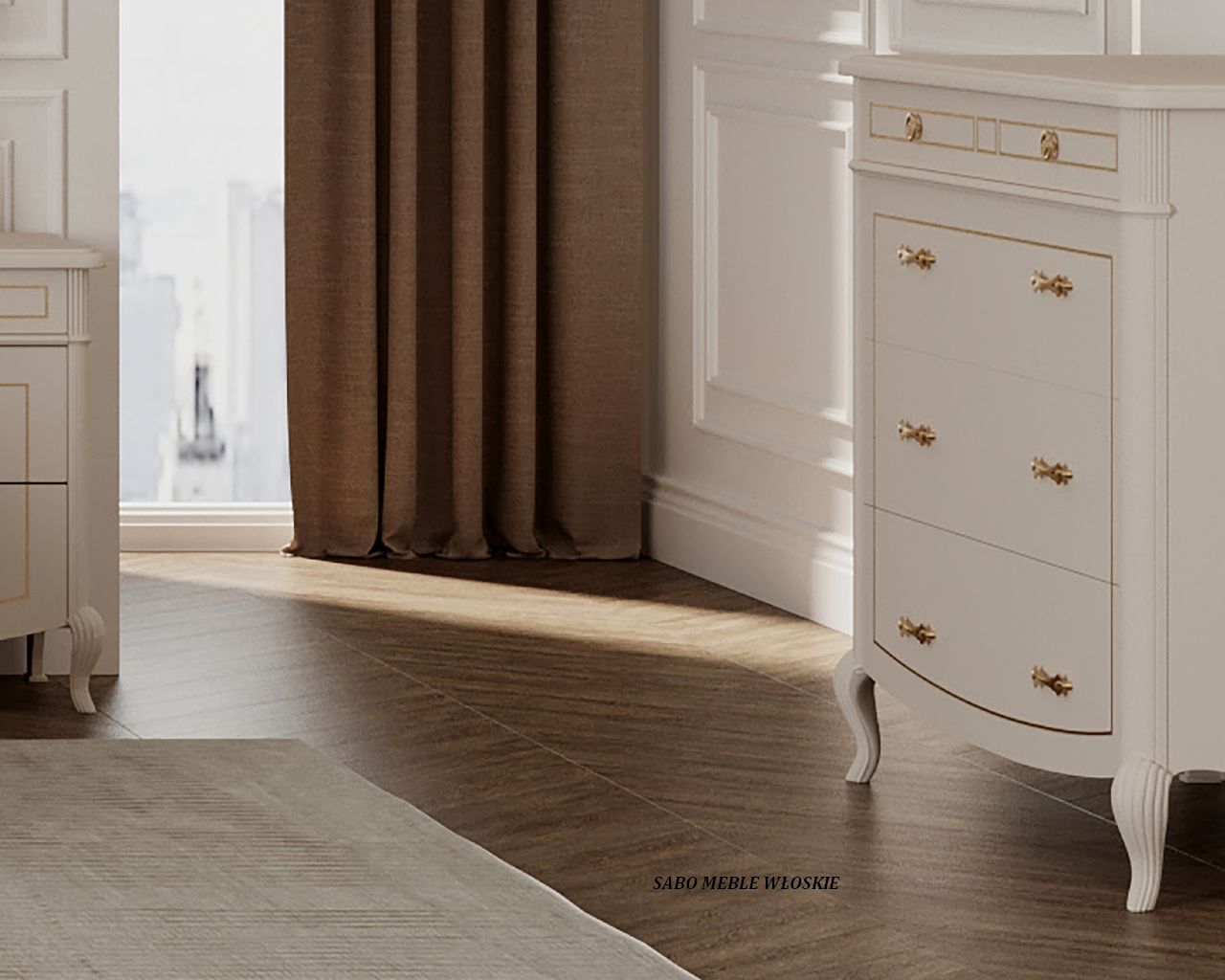 komoda do sypialni Leonardo laccato ze złotymi dodatkami ,