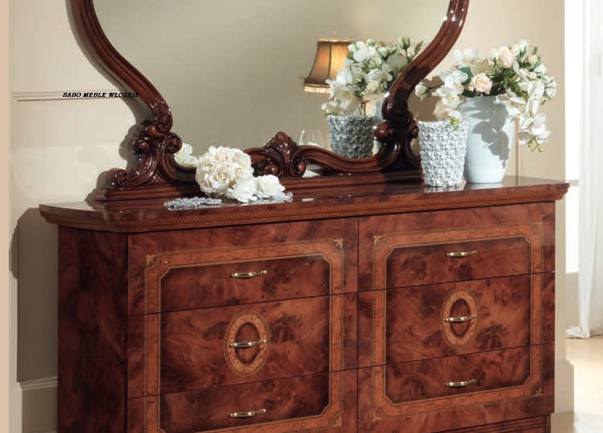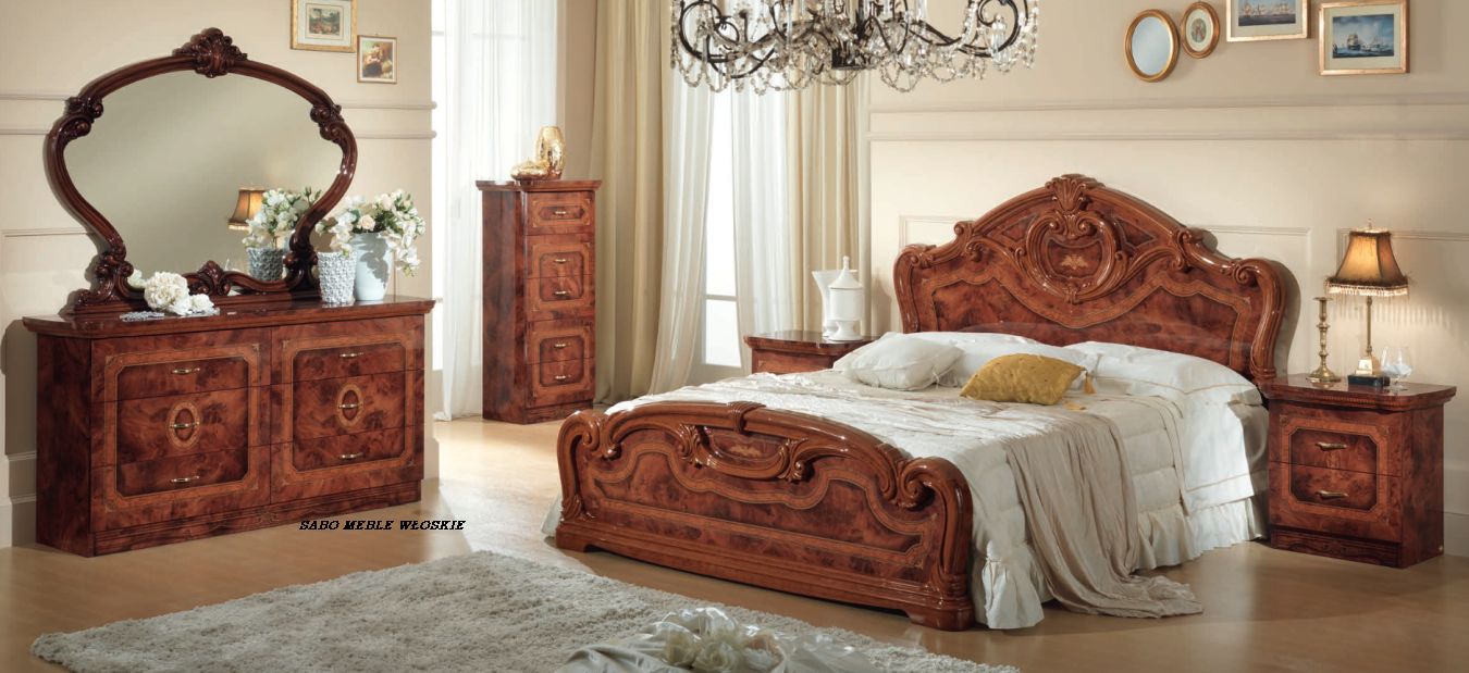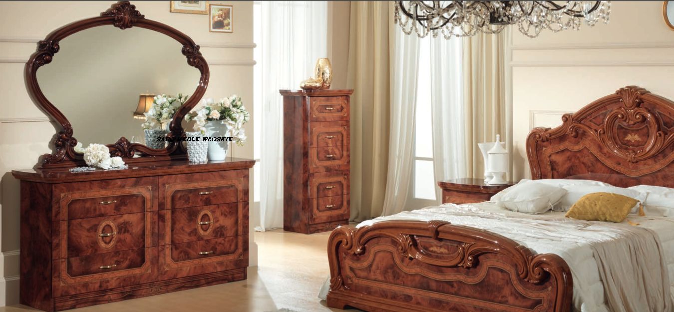 meble włoskie w kolorze orzechowym,lakierowane na wysoki połysk z płyty
