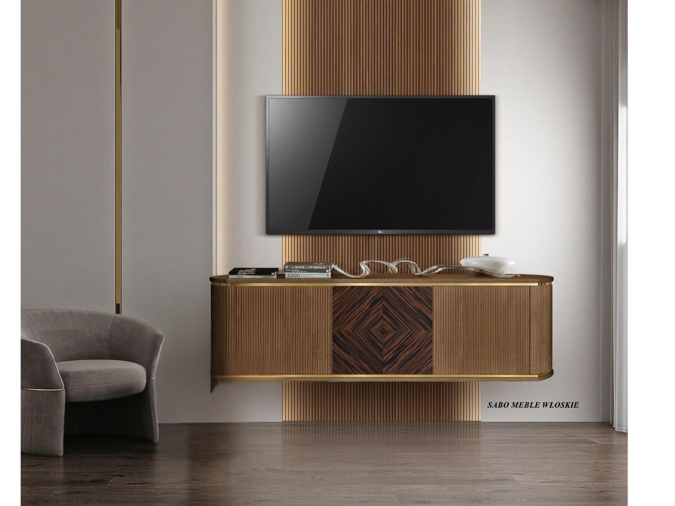 Meble drewniane żebrowane dostępne w dowolnej konfiguracji dostępnych frontów i podstaw.