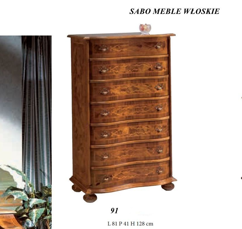 Komoda wysoka Linosa 91, 7-szufladowa,wykonana z drewna orzechowego
