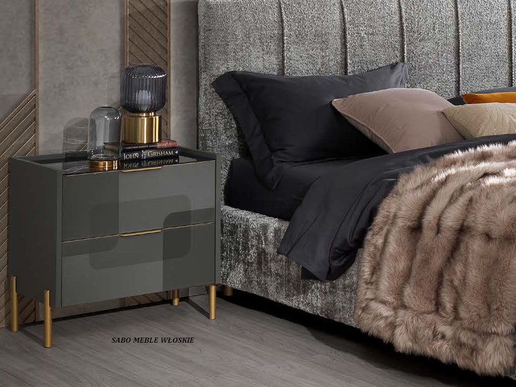 Szafka nocna Bella Casa Lux szara grafitowa z aluminiowymi nóżkami w kolorze złotym