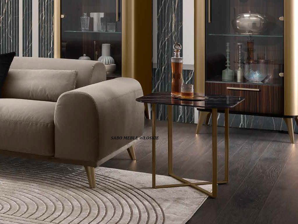 kolorem matowego złota ,blaty szklane z efektem czarnego marmuru.
