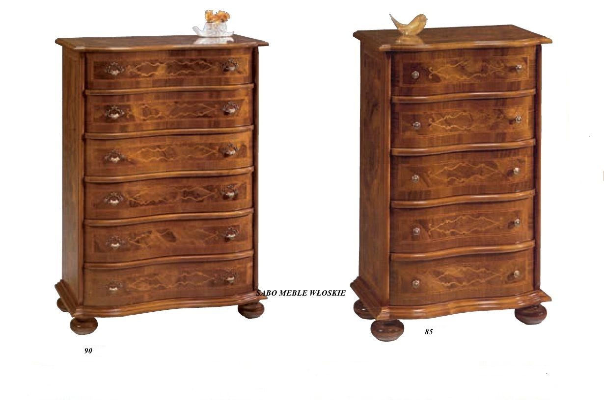 Komoda wysoka 6s Linosa 90,wykonana z drewna orzechowego,ozdobiona klonową