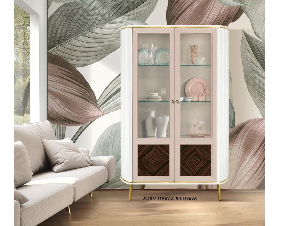 Witryna 2-drzwiowa Margaret na metalowych złotych nóżkach w kolorze