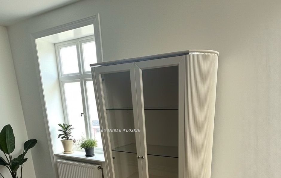 kryształkiem Swarovskiego we frontach witryn.Szuflady i drzwi komód,stolików tv ,konsoli