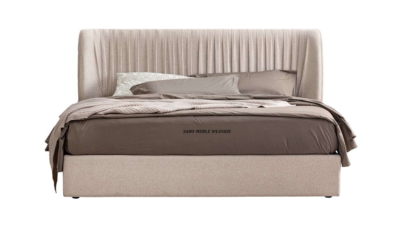 Łóżko tapicerowane całe w beżowej tkaninie ,opcjonalnie dostępne z pojemnikiem