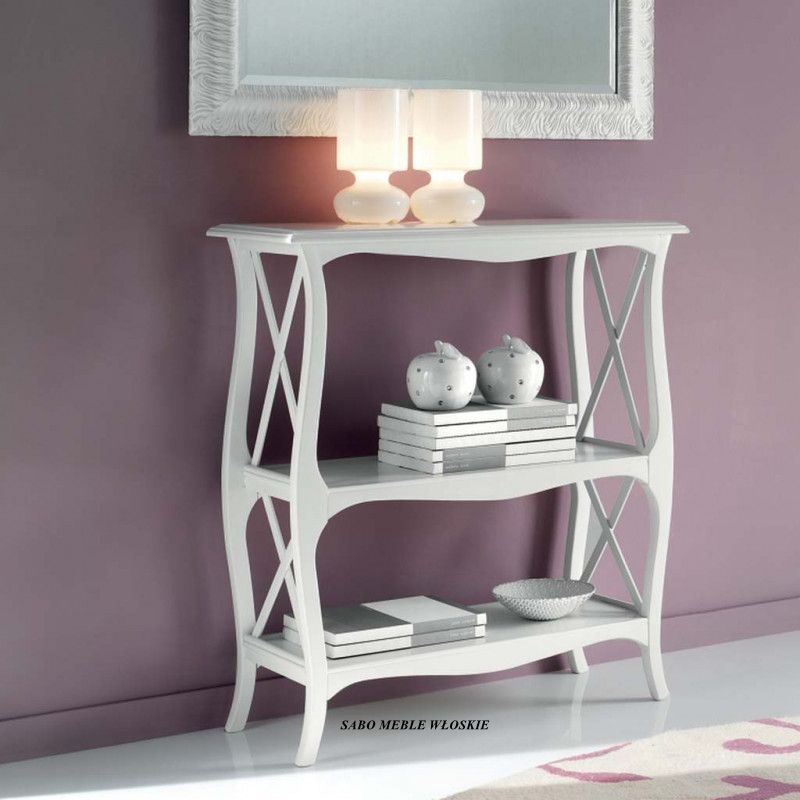 Etażerka " Linosa 1558" z 3 półkami z litego drewna topolowego w kolorze białym,